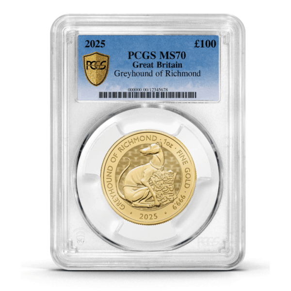 Enquire about PCGS Certified 2025 Tudor Beast Greyhound of Richmond 1oz Gold Coin